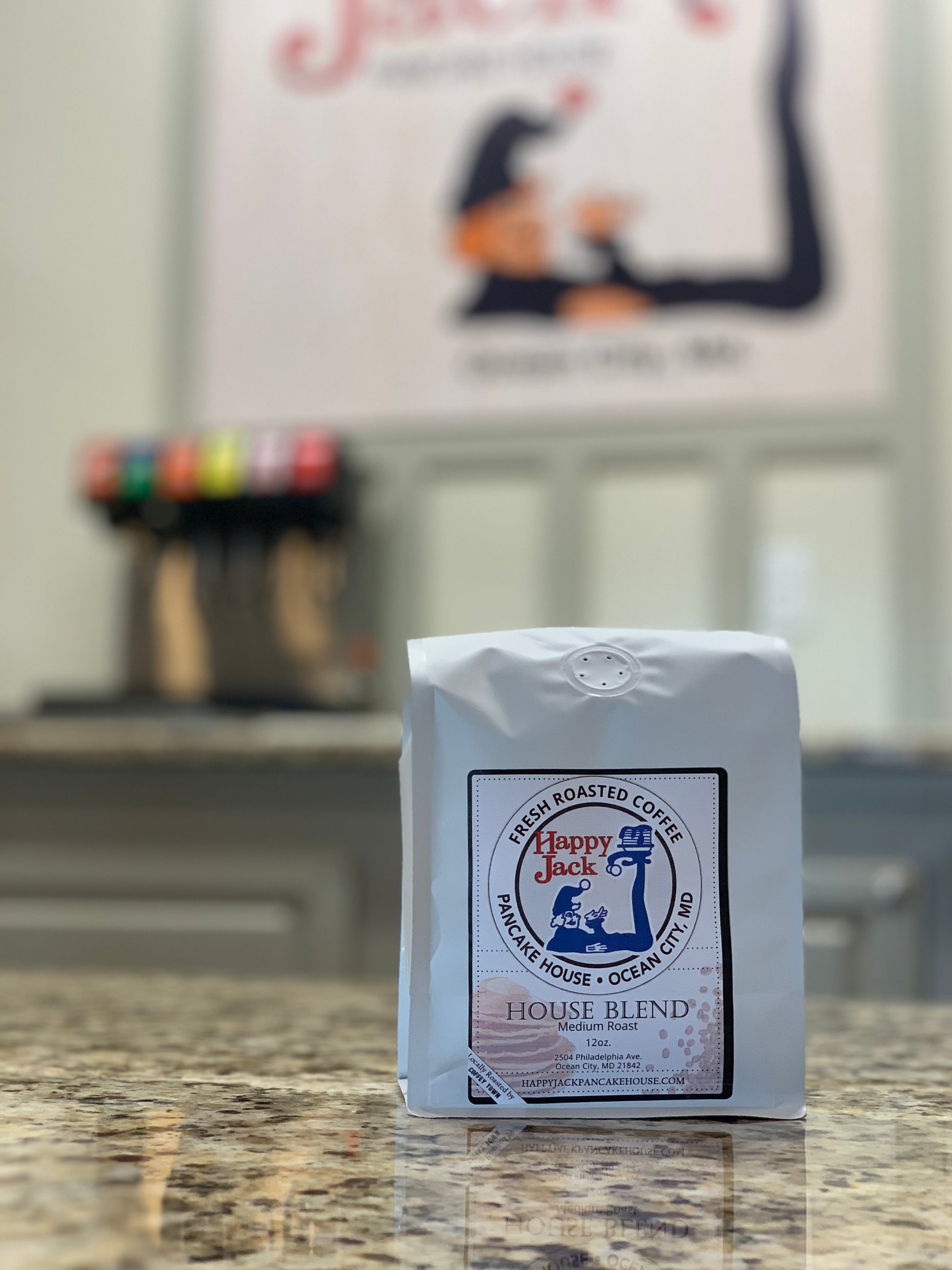 Now you can have a taste of Happy Jacks at home - our coffee that is! Fresh, locally roasted coffee beans. 12 oz. bag of whole bean coffee.