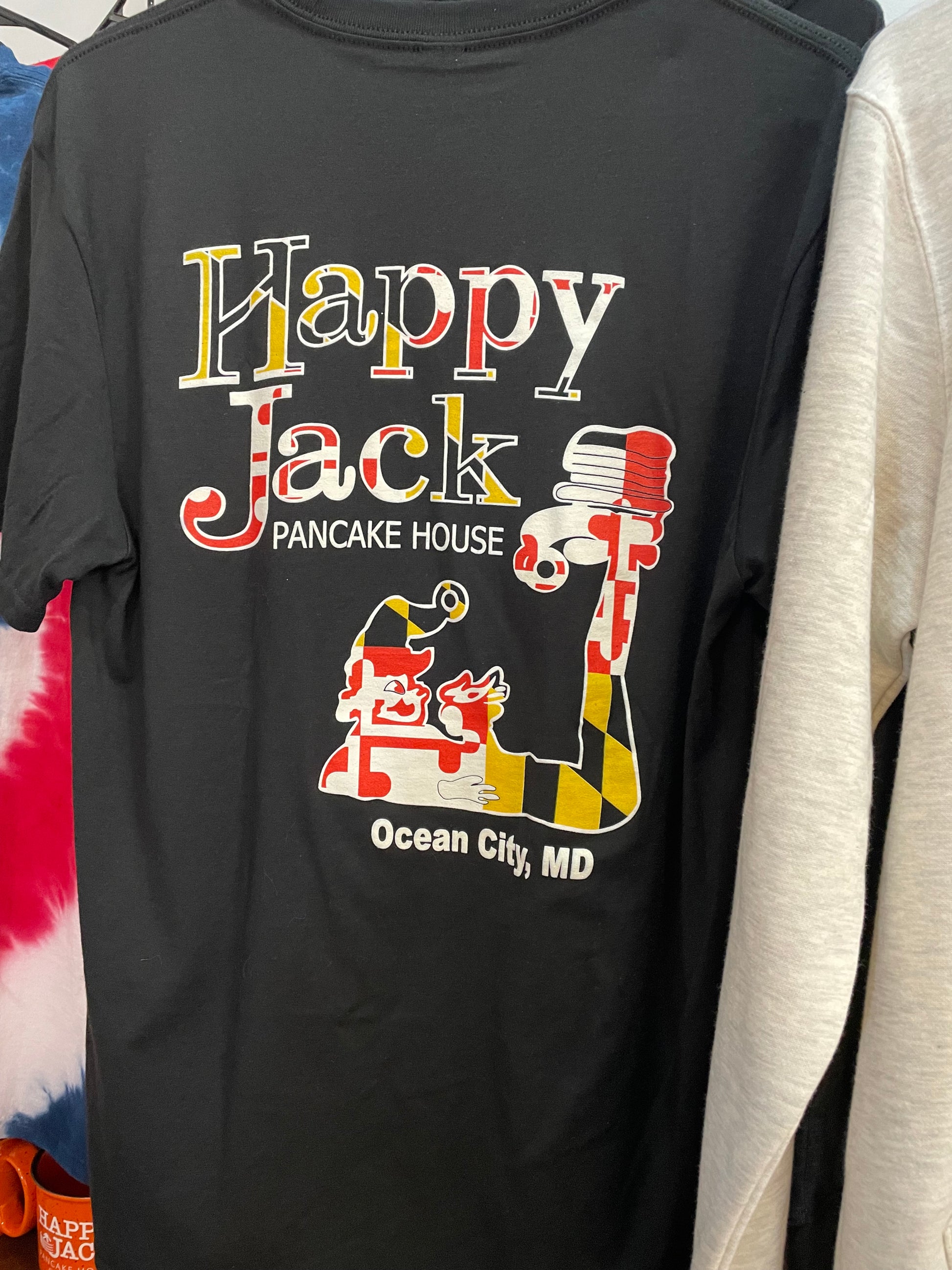Our soft 50/50 cotton polyester blend black t-shirt. Happy Jack logo on front left chest and classic Happy Jack logo with MD Print on back.
